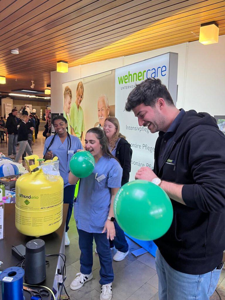 Wehnercare stellte die Pflegeberufe mit ihrem Ausbildungsvideo vor und bot zahlreiche interaktive Mitmach-Aktionen: Vom Ballspiel „Volltreffer- du hast die Ausbildung bei uns im Sack“ über das Angelspiel „Fang dir deinen Traumjob in der Pflege“ bis hin zu offenen Gesprächen über Lohn, Ausbildungsmöglichkeiten und Karrierechancen.